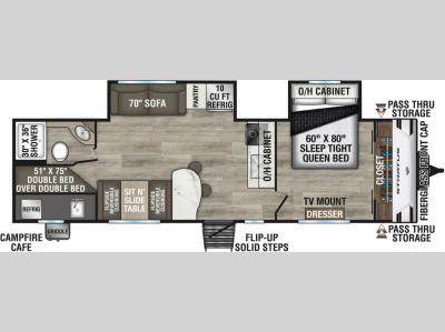 With a variety of floorplan designs and weights, these units are super light weight with exclusive technology to make setting up your RV easier so you can spend more time enjoying your outdoor activities. Their modern farmhouse design with heirloom maple, antique white glazed cabinets, and double door 10 cu. ft. refrigerator will have you feeling right at home. Each one of the four exterior colors to choose from will turn heads at the campground!