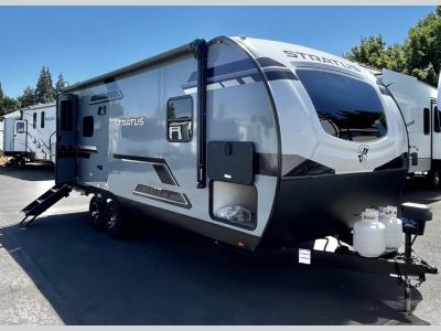 The Venture RV Stratus travel trailers have it all! From an eye-catching exterior to stunning interior décor, a significant amount of storage, and a long list of handy features. They even have clever concealed spaces for organization that is out of sight like the storage bins under the dinette.